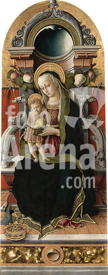 alb3700157 Madonna and Child Enthroned with Donor. Dated: 1470. Dimensions: painted surface: 125.3 x 50.7 cm (49 5/16 x 19 15/16 in.) overall (including unpainted margins): 129.5 x 54.4 cm (51 x 21 7/16 in.) framed: 185.4 x 91.8 x 7.9 cm (73 x 36 1/8 x 3 1/8 in.). Medium: tempera on poplar panel. Museum: National Gallery of Art, Washington DC. Author: Carlo Crivelli.