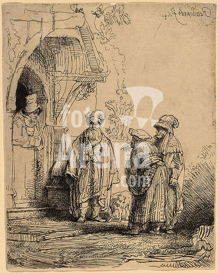 alb3702543 Three Oriental Figures (Jacob and Laban?). Dated: 1641. Medium: etching. Museum: National Gallery of Art, Washington DC. Author: Rembrandt.