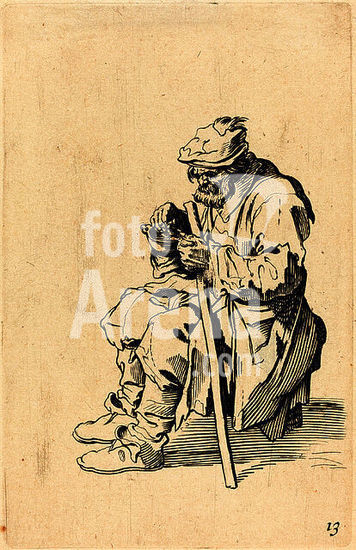 alb3710275 Beggar Eating. Medium: etching. Museum: National Gallery of Art, Washington DC. Author: after Jacques Callot.