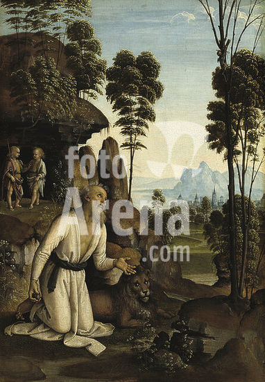 alb3711954 Saint Jerome in the Wilderness. Dated: c. 1490/1500. Dimensions: overall: 60 x 41.9 cm (23 5/8 x 16 1/2 in.) framed: 73.7 x 55.3 x 9.8 cm (29 x 21 3/4 x 3 7/8 in.). Medium: tempera on poplar panel. Museum: National Gallery of Art, Washington DC. Author: Follower of Pietro Perugino.