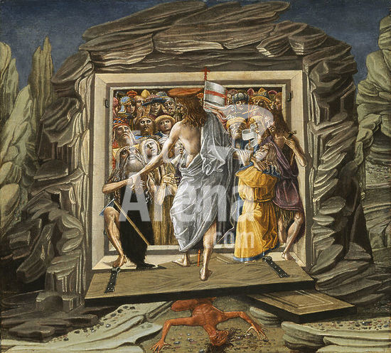 alb3702375 Christ in Limbo. Dated: c. 1550/1575. Dimensions: overall: 108.4 x 41.2 cm (42 11/16 x 16 1/4 in.) overall (with added strip): 109.7 x 42.9 cm (43 3/16 x 16 7/8 in.) framed: 125.1 x 58.1 x 7 cm (49 1/4 x 22 7/8 x 2 3/4 in.). Medium: oil on panel. Museum: National Gallery of Art, Washington DC. Author: Workshop of Hans Mielich.