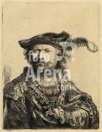 alb3714372 Self-Portrait in a Velvet Cap with Plume. Dated: 1638. Dimensions: plate: 13.5 x 10.3 cm (5 5/16 x 4 1/16 in.) sheet: 18 x 14.2 cm (7 1/16 x 5 9/16 in.). Medium: etching. Museum: National Gallery of Art, Washington DC. Author: Rembrandt.