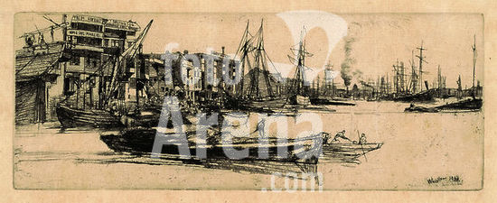 alb3715286 Thames Warehouses. Dated: 1859. Dimensions: plate: 7.62 × 20.32 cm (3 × 8 in.) sheet: 13.97 × 26.19 cm (5 1/2 × 10 5/16 in.). Medium: etching and drypoint in black on laid paper. Museum: National Gallery of Art, Washington DC. Author: JAMES ABBOTT MCNEILL WHISTLER.