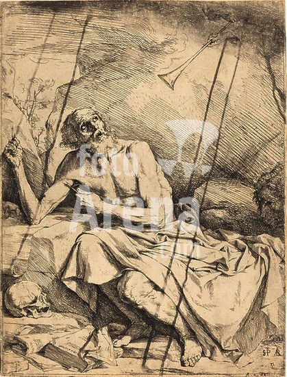 alb3717726 Saint Jerome Hearing the Trumpet of the Last Judgment. Dated: 1621. Medium: etching, drypoint, and engraving. Museum: National Gallery of Art, Washington DC. Author: Jusepe de Ribera.