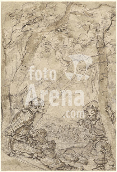 alb3744464 Don Quixote and Sancho Panza Witness the Attack on Rocinante. Dated: 1780s. Dimensions: overall: 42.1 x 28.7 cm (16 9/16 x 11 5/16 in.). Medium: black chalk with gray and brown wash on laid paper. Museum: National Gallery of Art, Washington DC. Author: JEAN-HONORE FRAGONARD.