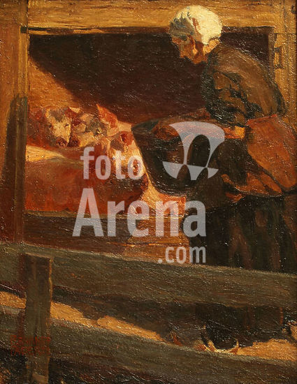 akg1985103 Suthers, Leghe. 1856-1924. "The farmyard", no date. Oil on canvas, 56 × 44cm. London, Sotheby's, 2 May 1990, Lot 1.