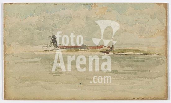 alb9531178 A view of the river Maas, with a windmill and red roofs in the distance, and a sailboat across the water; unsigned. Date: 1884. Watercolor on paper. Origin: United States. Museum: Freer Gallery of Art and Arthur M. Sackler Gallery.