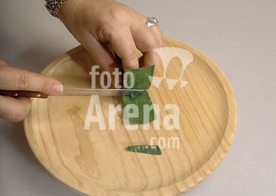 orz165888 CORTE DE UNA HOJA DE ALOE VERA PARA LA EXTRACCION DE SU GEL.
