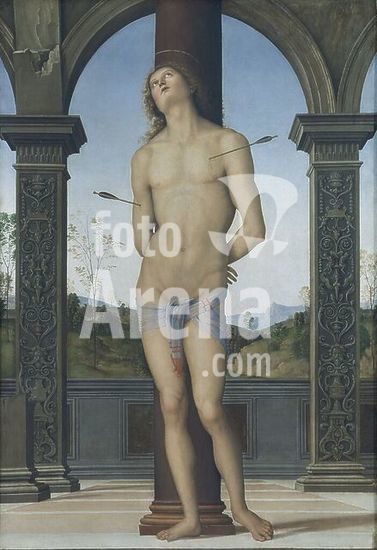 orz176700 St. Sebastian - 176x116 cm - oil on panel - Italian Renaissance. Author: PIETRO PERUGINO (1445-1523). Location: LOUVRE MUSEUM-PAINTINGS. France.