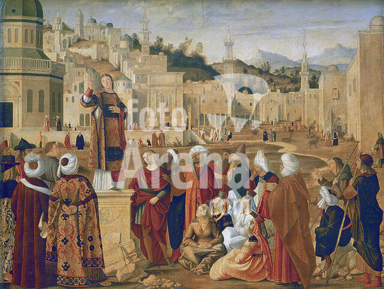 orz176719 St. Stephen Preaching - 1515 - 148x194 cm - oil on canvas - Italian Renaissance. Author: VITTORE CARPACCIO (1455-1526). Location: LOUVRE MUSEUM-PAINTINGS. France. SAN ESTEBAN MARTIR.