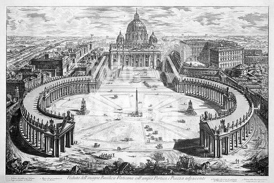 orz214941 VISTA DE LA BASILICA Y DE LA PLAZA DE SAN PEDRO DEL VATICANO - GRABADO 1775-1778 - AGUAFUERTE. Author: GIIVANNI BATTISTA PIRANESI (1720-1778). Location: PRIVATE COLLECTION.