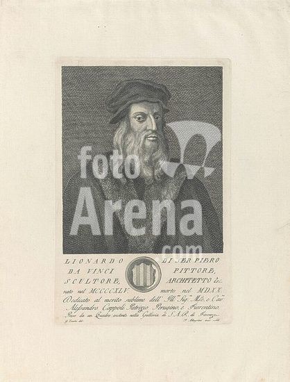 orz218714 PORTRAIT OF LEONARDO DA VINCI - PAINTED IN THE 17TH CENTURY AND ENGRAVED IN THE 18TH CENTURY. Author: FRANCESCO ALLEGRINI. Location: PRIVATE COLLECTION.