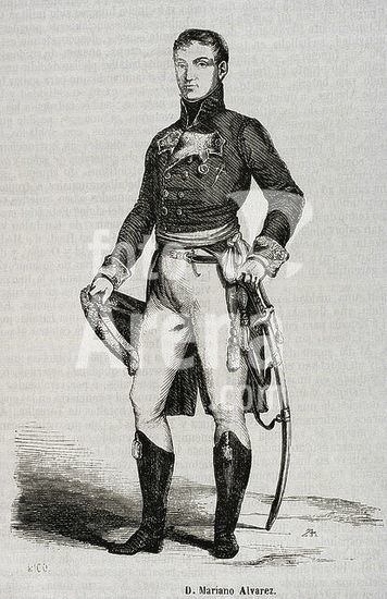 alb5343850 Juan Díaz Porlier (1788-1815). Spanish military. Field Marshal. Guerrilla fighter in the Peninsular War (1808-1814). Portrait. Engraving by Rico. Historia General de España by Father Mariana. Madrid, 1853. Author: Bernardo Rico (1825-1894). Spanish painter and engraver.