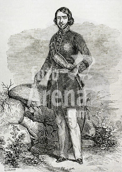 alb5343125 Carlos Luis de Borbón (Carlos Luis María Fernando de Borbón y Braganza) (1818-1861), count of Montemolin. Carlist pretender to the Spanish throne as Charles VI. Son of Carlos Maria Isidro de Borbón and Maria Francisca de Braganza. Braganza's pretender leaves. Illustration by Manuel Miranda. Engraving by Ortega. Panorama Español, Crónica Contemporánea. Madrid, 1842. Author: MANUEL MIRANDA. 19th century Spanish artist.