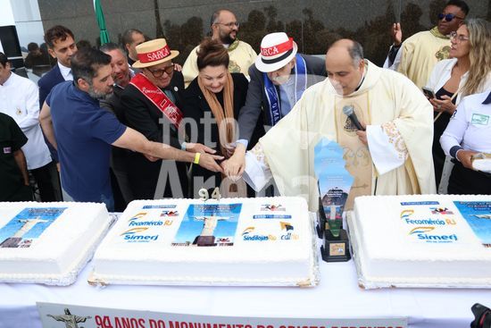 2822750 O Cristo Redentor, símbolo da cidade do Rio de Janeiro, completou 94 anos neste domingo (12). A data foi comemorada com uma missa celebrada pelo Padre Omar e houve distribuição de bolo para os presentes
