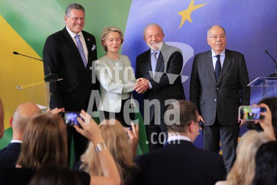 2868928 O presidente da República, luiz Inácio Lula da Silva, recebeu a presidente da União Europeia, Ursula Von Der Leyen nesta sexta-feira (16), para celebrar o acordo com o Mercosul.
