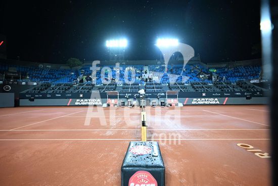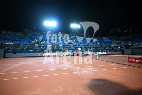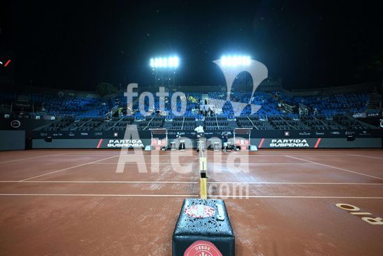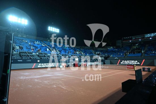 2891283 Jogo aguarda inicio devido a chuva. João Fonseca em disputa contra Ignacio Buse na Quadra Guga Kuerten, durante Rio Open, realizada no Jockey Club Brasileiro, na tarde desta quinta-feira (19), no Rio de Janeiro.
