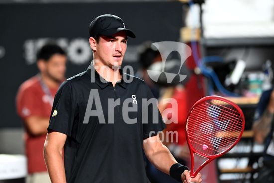 2891299 João Fonseca em disputa contra Ignacio Buse na Quadra Guga Kuerten, durante Rio Open, realizada no Jockey Club Brasileiro, na tarde desta quinta-feira (19), no Rio de Janeiro.