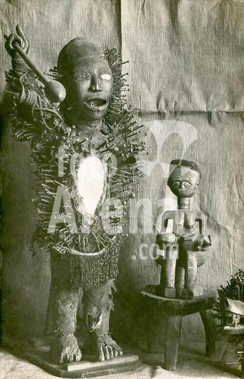akg1120782 Völkerkunde: Afrika.-"Fétiches. Bas Congo et de la Côte d'Or".-(Fetische. Unterer Kongo und Goldküste). Fotopostkarte, undatiert.