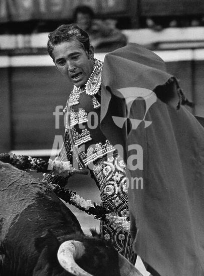 akg816461 Sport: bull fighting.-The matador Paco Camino (born 1940) with a bull in the arena of Montde-Marsan (Dép.Landes, France).-Photo, 1976.
