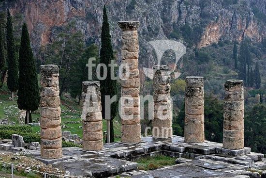 akg1013230 Delphi / Delfí (Phokis, Griechenland), Heiliger Bezirk, Apollontempel (7. Jh.v.Chr.; Neubau 510 v.Chr., 373 v.Chr. durch Erdbeben zerstört, neuer Tempel 330 v.Chr. vollendet). /-Teilansicht: Säulen der Südostecke.-Foto, November 2008.
