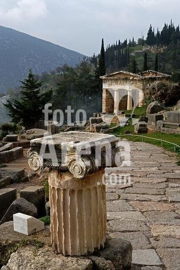 akg1013232 Delphi / Delfí (Phocis, Greece), Temple of Apollo, Sacred Way.-View of the sacred way towards south west with the Athenian treasury (built 490-489 BC).-Photo, November 2008.