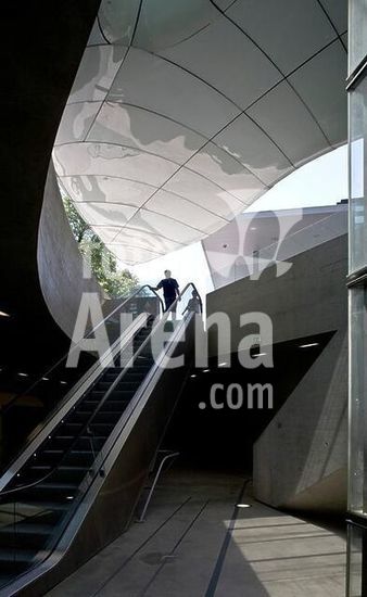 akg1001664 Innsbruck (Tirol, Österreich), Hungerburgbahn (Standseilbahn, Neubau, Inbetriebnahme 2007; Arch.: Zaha Hadid).-Teilansicht: Station Congress.-Foto, 2009.