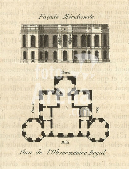 ado00024352 Plan of the Observatoire Royal of Paris (France). Plate from the first edition of the book "Tableau historique et pittoresque de Paris" by J.B. de Saint-Victor published ca. 1800. Author: UNKNOWN ARTIST.