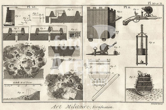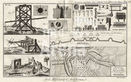 ado00025453 Military Art. Plate from the "Encyclopdie, ou dictionnaire raisonn des sciences, des arts et des mtiers"(Encyclopedia, or a systematic dictionary of the sciences, arts, and crafts) edited by Denis Diderot and Jean D'Alembert and published in France between 1751 and 1772. Author: Artiste inconnu.