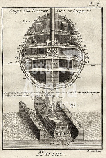 ado00025475 Marine. Plate from the "Encyclopdie, ou dictionnaire raisonn des sciences, des arts et des mtiers"(Encyclopedia, or a systematic dictionary of the sciences, arts, and crafts) edited by Denis Diderot and Jean D'Alembert and published in France between 1751 and 1772. Author: Artiste inconnu.