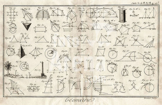 ado00025494 Geometry. Plate from the "Encyclopdie, ou dictionnaire raisonn des sciences, des arts et des mtiers"(Encyclopedia, or a systematic dictionary of the sciences, arts, and crafts) edited by Denis Diderot and Jean D'Alembert and published in France between 1751 and 1772. Author: Artiste inconnu.