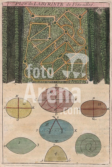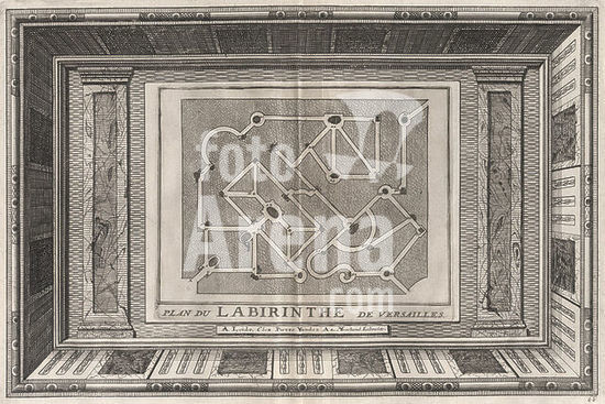 ado00051046 Plan of the labyrinth in the gardens of Versailles (France). Engraving of the 18th century by A. Leide.