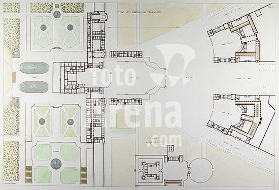 ado00051048 Plan of the chateau de Versailles (France). Etching watercolor of 18th century. Author: UNKNOWN ARTIST.