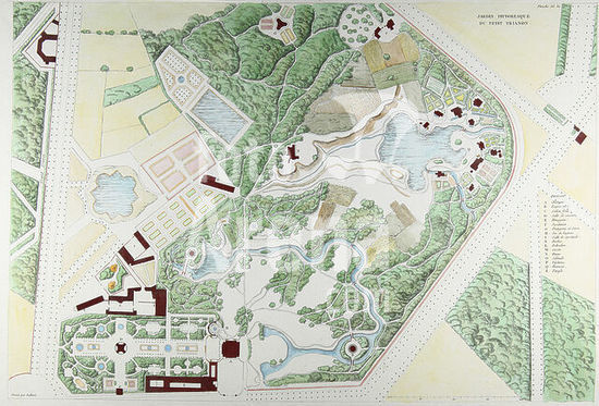 ado00051056 Plan of the garden of Petit Trianon in the chateau de Versailles (France). Etching watercolor of 18th century. Author: UNKNOWN ARTIST.
