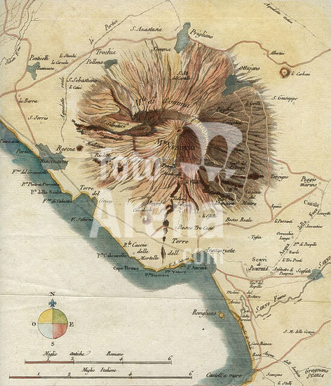ado00051486 Map of the area of Vesuvius (Italy). She favoured the discovery of Herculaneum and others ancient cities destroyed by the eruption of the volcano. Author: UNKNOWN ARTIST.