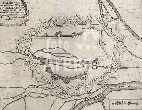 ado00051640 Map of the city of Augsburg (Germany) in 1694. Engraving. Author: UNKNOWN ARTIST.