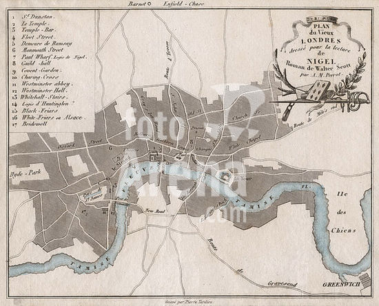 ado00058523 Map of the Old London created for the reading of the novel by Walter Scott "The Fortunes of Nigel" which takes place under the reign of James I (England). Author: Artist Unknown.
