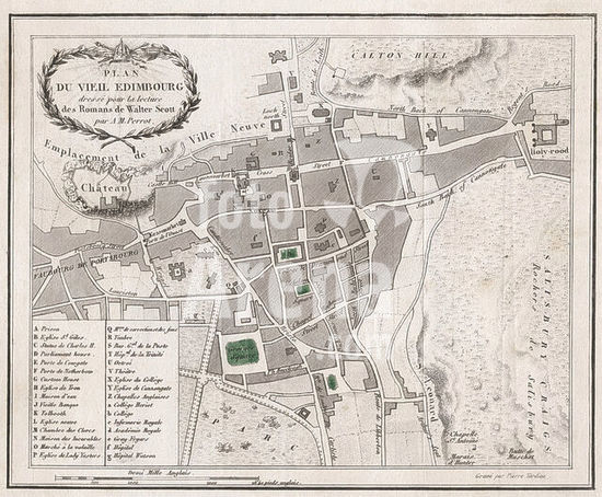 ado00058809 Map of the Old Edinburgh created for the reading of the novels by Walter Scott (Scotland). Author: UNKNOWN ARTIST.