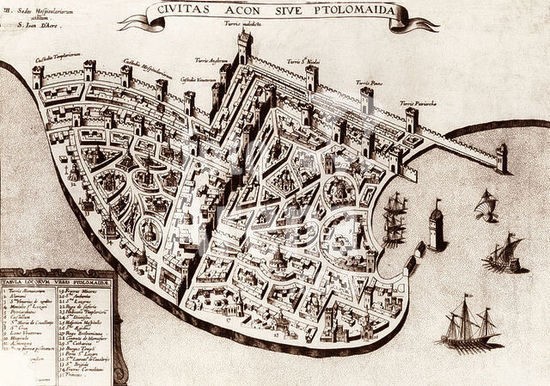 ado00082916 Map of the city of Acre. Engraving of the 16th century. Author: UNKNOWN ARTIST.