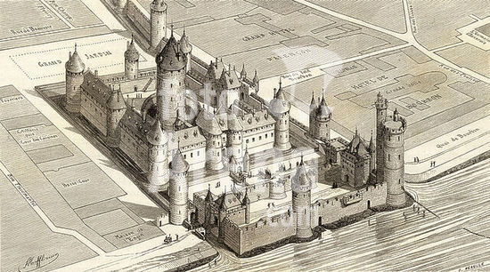 ado00091422 Reign of Philip Augustus of France. Aerial view of the Louvre in Paris (France). In 1362. Author: UNKNOWN ARTIST.