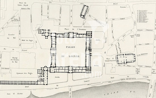 ado00091453 Map of the Louvre district in Paris (France). In 1836. Author: UNKNOWN ARTIST.