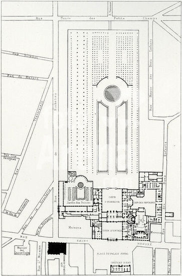 ado00051714 Project by Charles Percier and Pierre-Franois-Lonard Fontaine for the reunion of the Louvre with the Tuileries Palace. 1826-1828. Engraving b Normand.