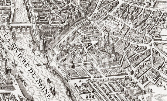 ado00092168 Map of the Palais-Royal and its surroundings in Paris (France). In 1500.