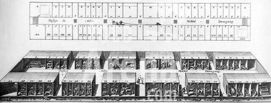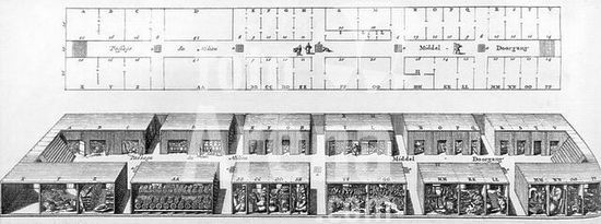 ado00095391 The Book of Genesis. The first floor of Noah's ark. Plate taken from the book "Histoire de la Bible" (History of the Bible) published in 1700. Author: UNKNOWN ARTIST.