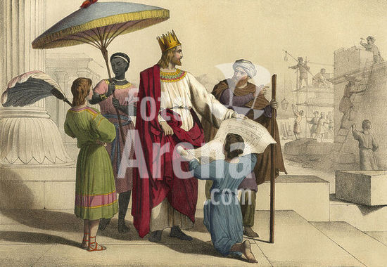 ado00103085 Old Testament. The construction of Solomon's Temple on Mount Moriah, built by King Solomon. Author: AUGUSTE LELOIR.