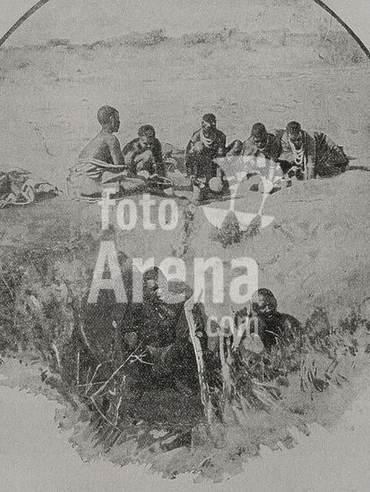 alb20427547 Mode of obtaining water in the Kalahari Desert, Southern Africa. Photogravure from a photograph by the Rev. Alfred Wookey. "La conquista de Africa" (The conquest of Africa), by Alfredo Opisso. Volume III. Published in Barcelona (Spain) by Molinas y Maza editores, 1911.