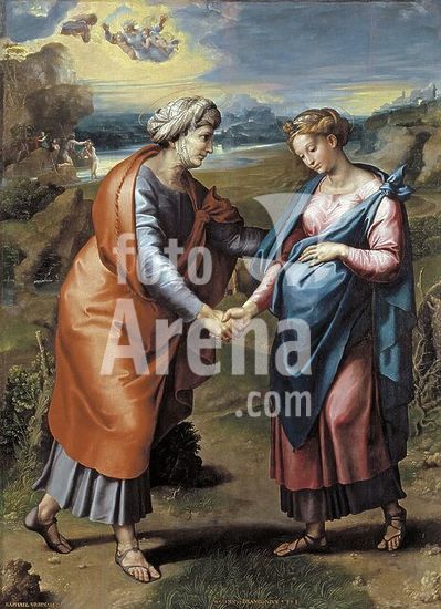 alb2070103 Giulio Romano; Giovanni Francesco Penni / 'The Visitation', ca. 1517, Italian School, Oil on panel, 200 cm x 145 cm, P00300. Museum: MUSEO DEL PRADO, MADRID, SPAIN.