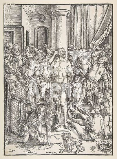 alb3664837 The Flagellation, from The Small Passion. Artist: Albrecht Dürer (German, Nuremberg 1471-1528 Nuremberg). Dimensions: sheet: 5 1/16 x 3 13/16 in. (12.8 x 9.7 cm). Date: ca. 1509. Museum: Metropolitan Museum of Art, New York, USA.