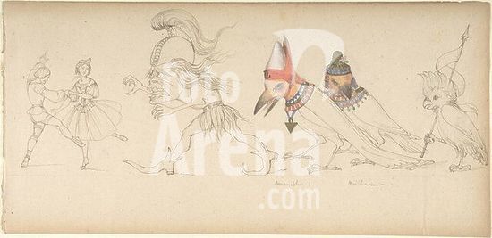 alb3620926 Frieze of Figures and Birds. Artist: Rev. Geoffrey Liddell Johnstone (British, 19th century). Dimensions: sheet: 8 1/4 x 17 in. (21 x 43.2 cm). Date: 19th century. Museum: Metropolitan Museum of Art, New York, USA.