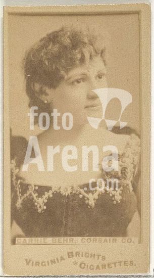 alb3653184 Carrie Behr, Corsair Co., from the Actors and Actresses series (N45, Type 1) for Virginia Brights Cigarettes. Dimensions: Sheet: 2 3/4 x 1 3/8 in. (7 x 3.5 cm). Publisher: Issued by Allen & Ginter (American, Richmond, Virginia). Date: ca. 1888.Trade cards from the "Actors and Actresses" series (N45, Type 1), issued ca. 1888 by Allen & Ginter to promote Virginia Brights, Dixie, Our Little Beauties and Opera Puffs Cigarettes. Museum: Metropolitan Museum of Art, New York, USA.